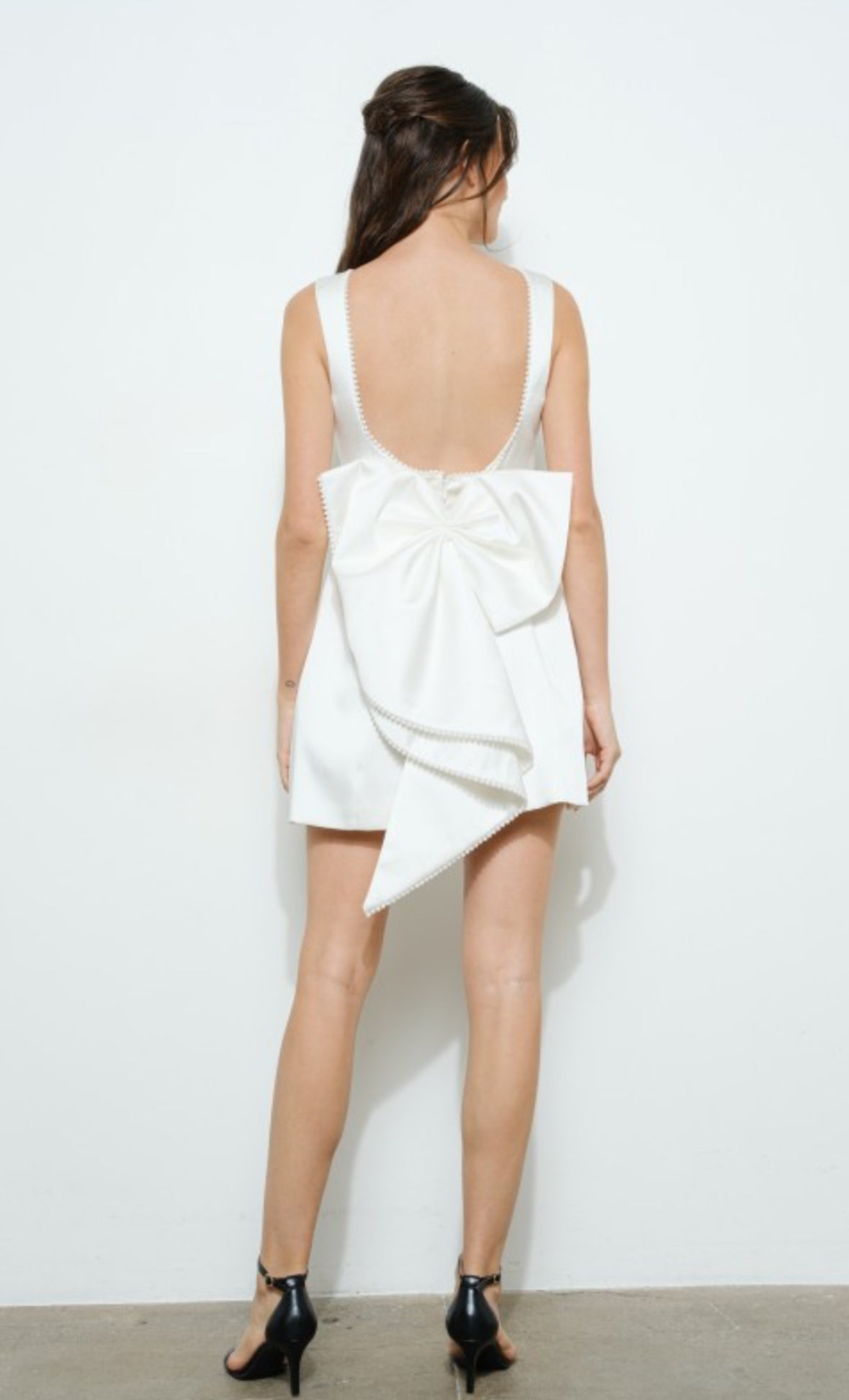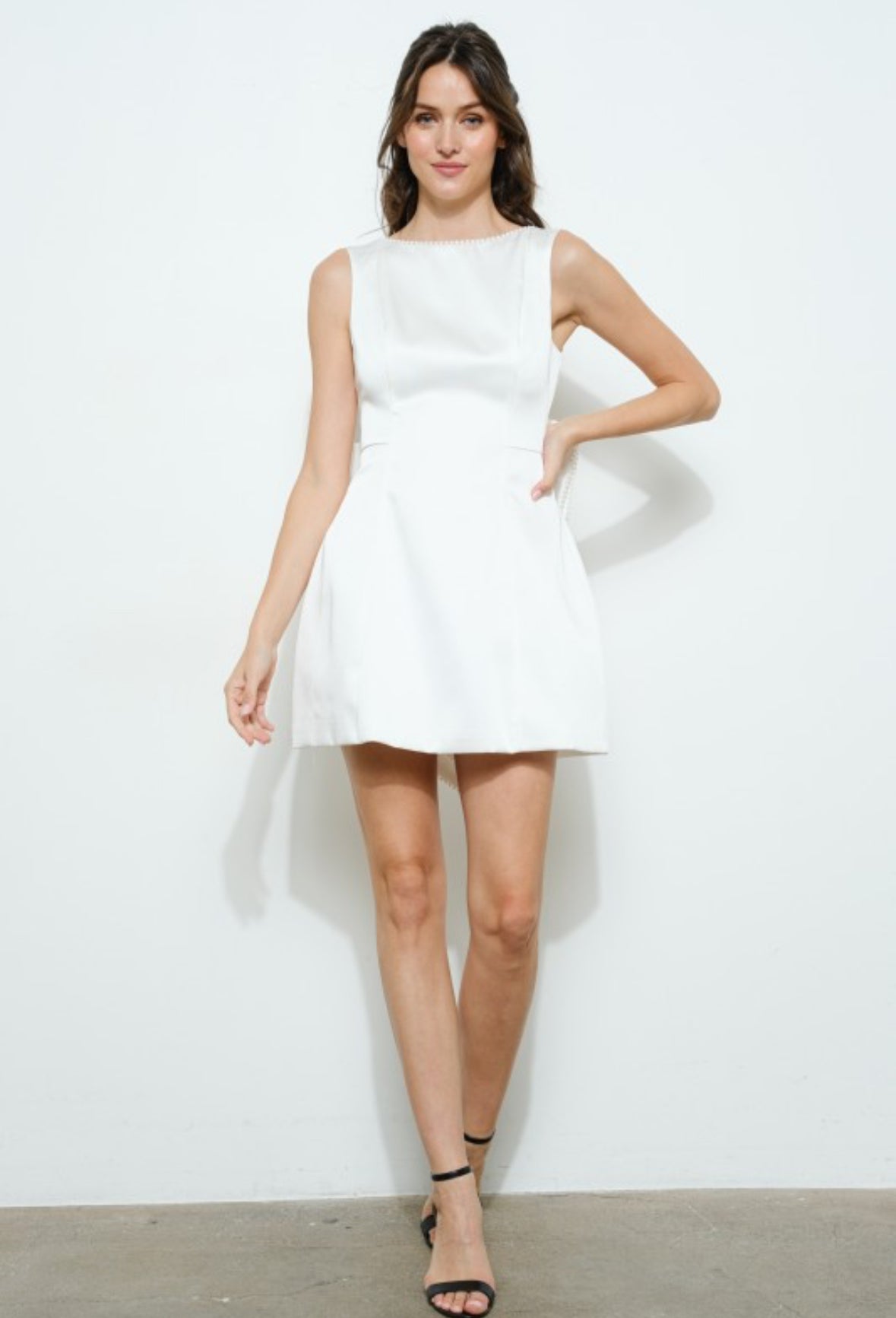 Sleeveless Pearl Trim Bow-Back Mini Dress