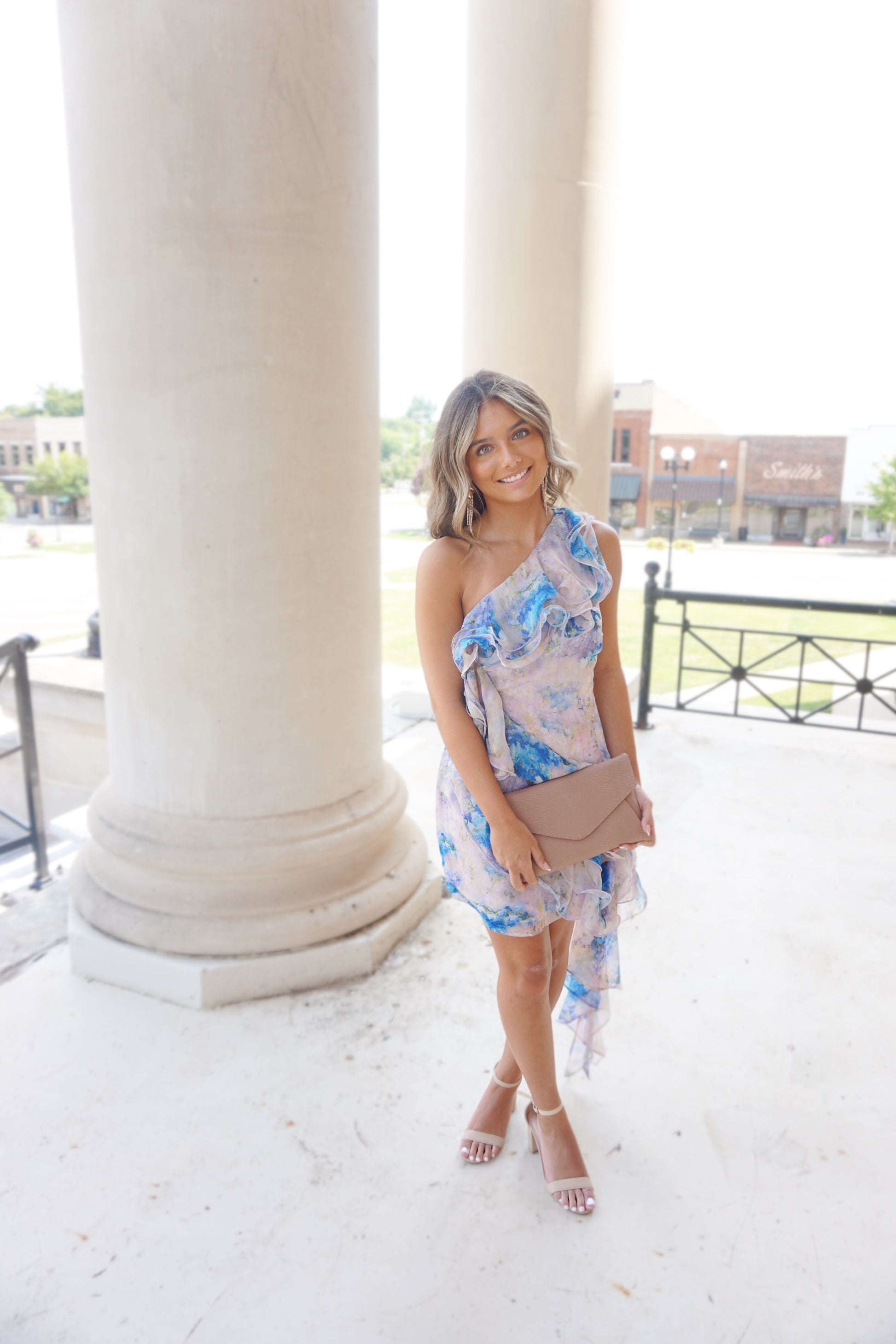 Get ready to turn heads with the Briony Mini Dress! This event-ready party dress features a playful asymmetric neckline and flirty frill details. With a slim fit and sweeping frill accents, this fully lined dress will have you feeling confident and stylish. The printed georgette fabric adds the perfect touch of texture and flair. No stretch, no problem!