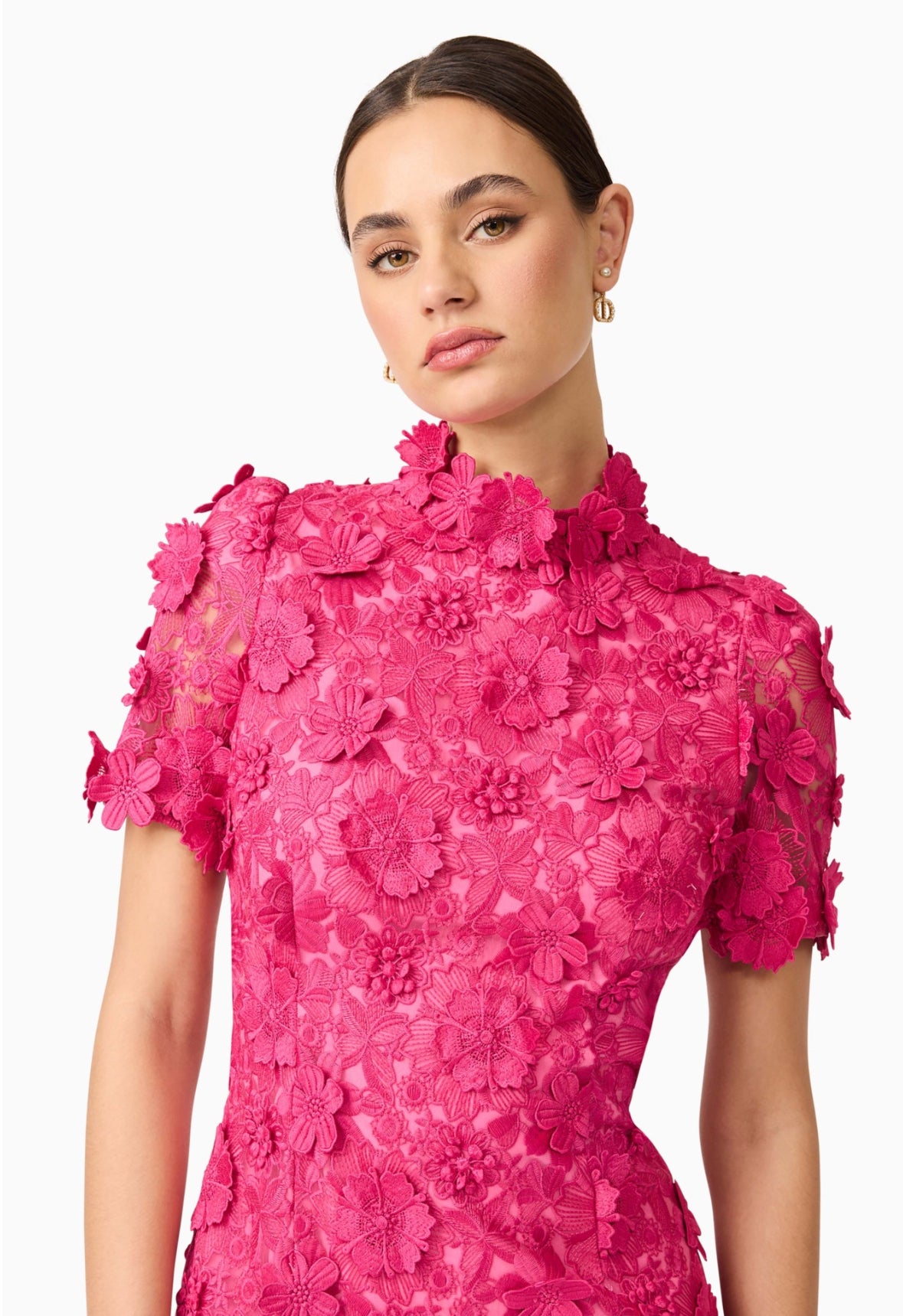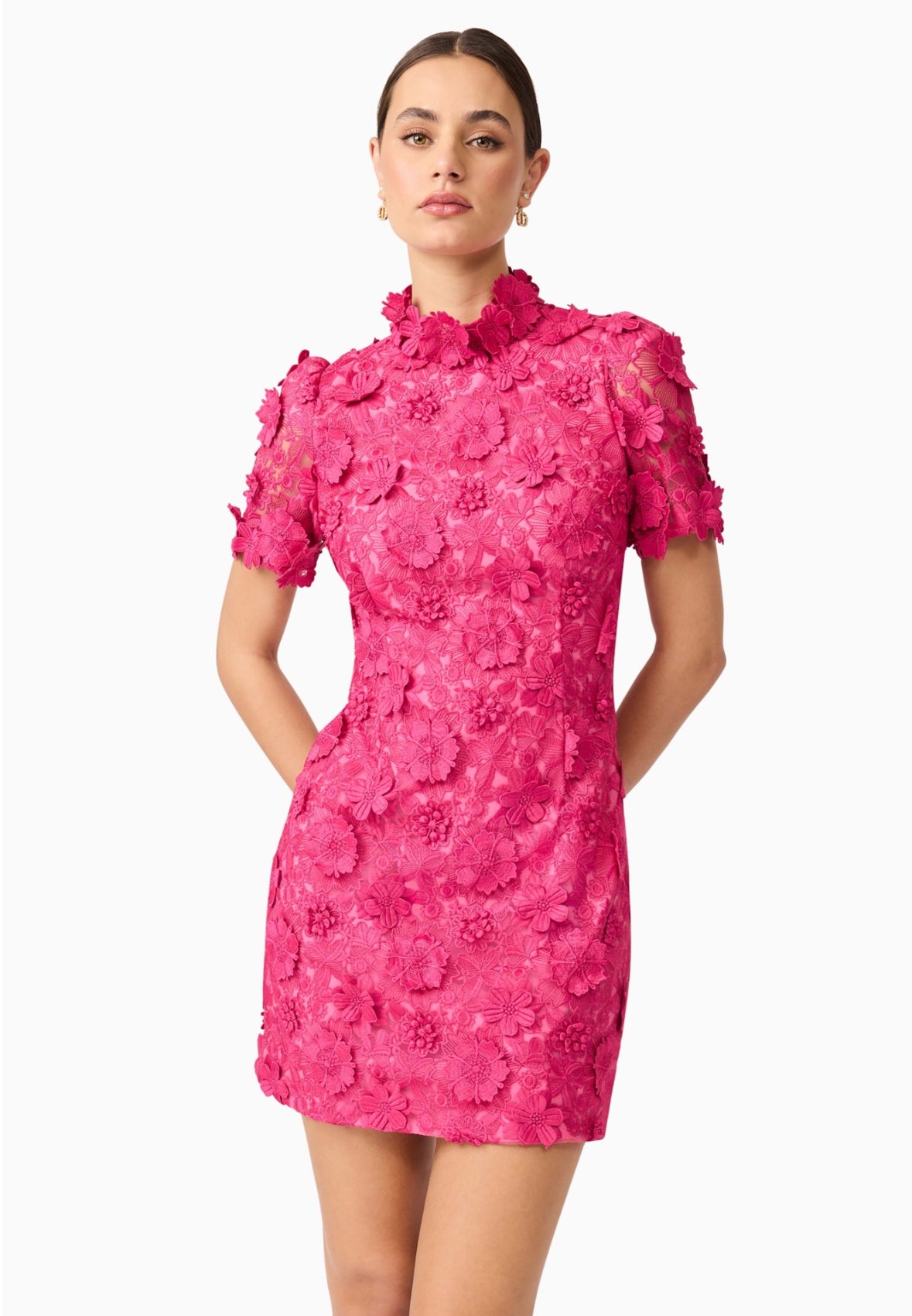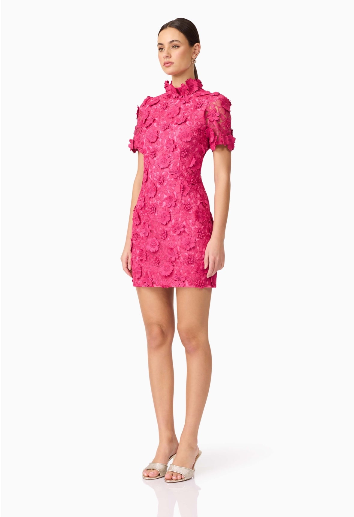 Indulge in luxury with our Claudia Mini Dress by Elliatt. Hand crafted with stunning 3D floral fabric, this show stopping piece is perfect for any cocktail event. Designed to fit true to size with minimal stretch, you'll be the best dressed at the party. Make a statement with this elegant and exclusive dress.