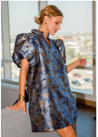 Looking for the perfect dress to elevate your holiday cocktail event? Dianne Mini has got you covered with its metallic gold detailing and flattering puff sleeves. Time to shine and be the life of the party! (Cocktail season approved!)