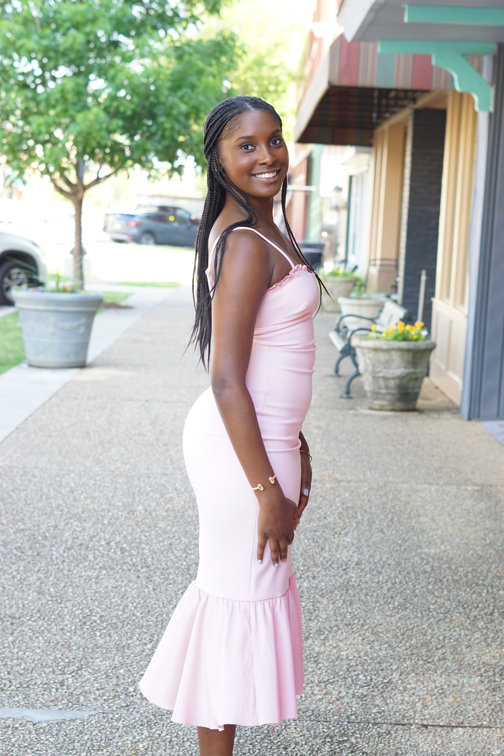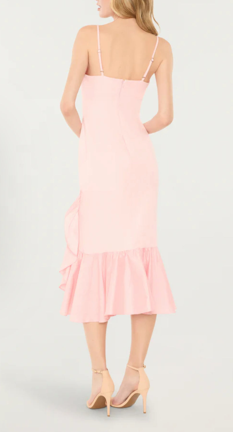 Look stunning at any spring event with the Maureen Midi. This gorgeous pink midi will surely turn heads with its playful charm. Perfect for those who don't take themselves too seriously, this dress adds a touch of fun and quirkiness to your wardrobe. Get ready to make a statement and stand out from the crowd!