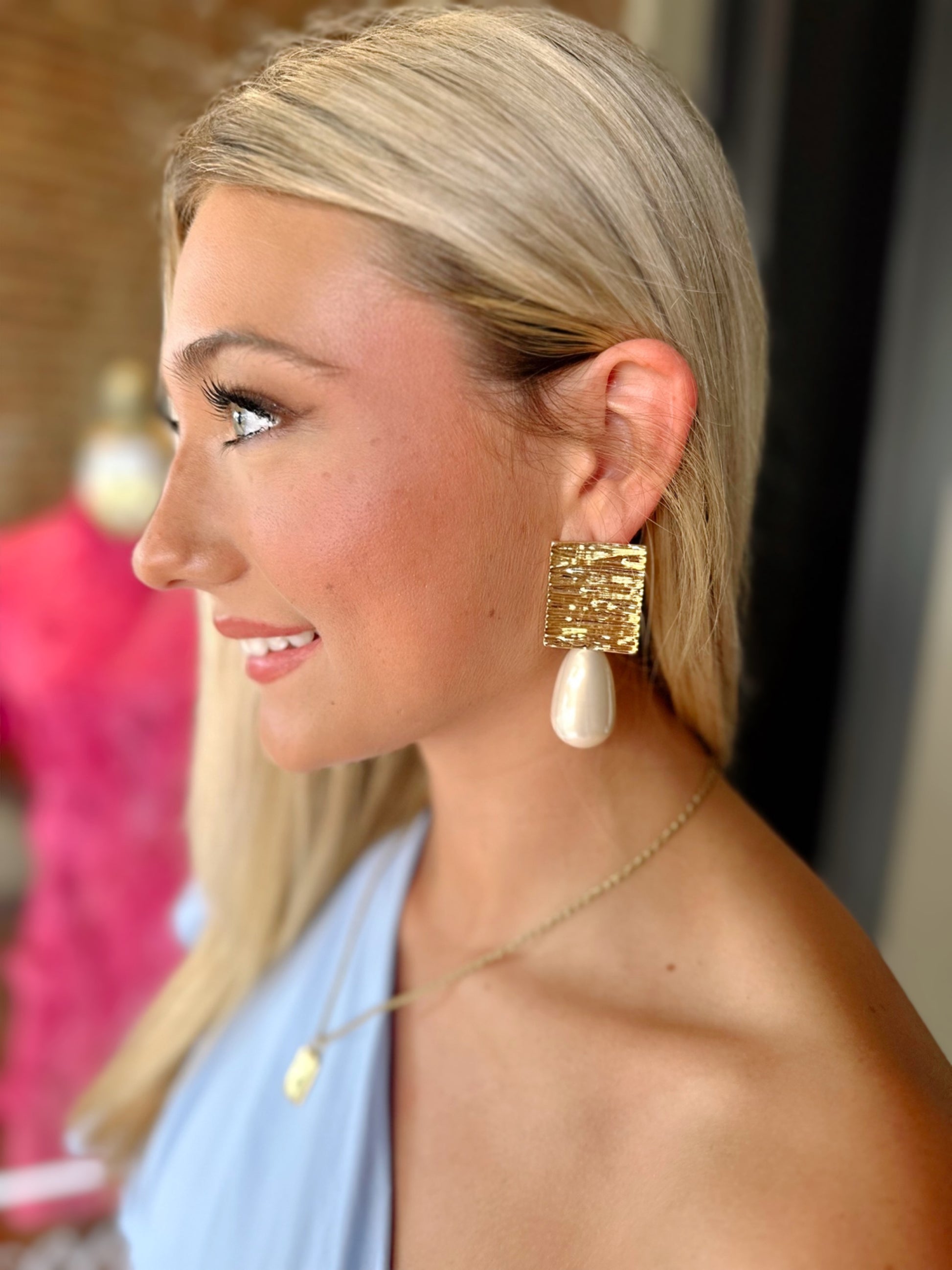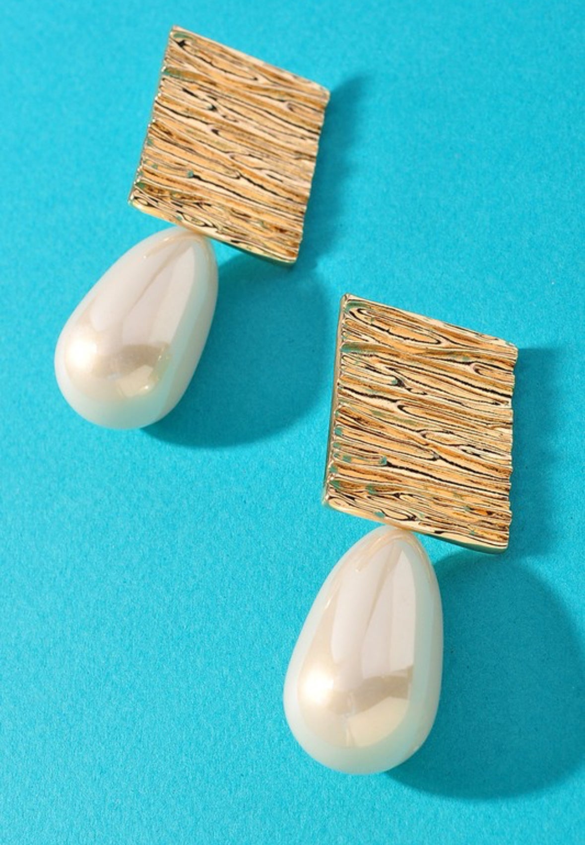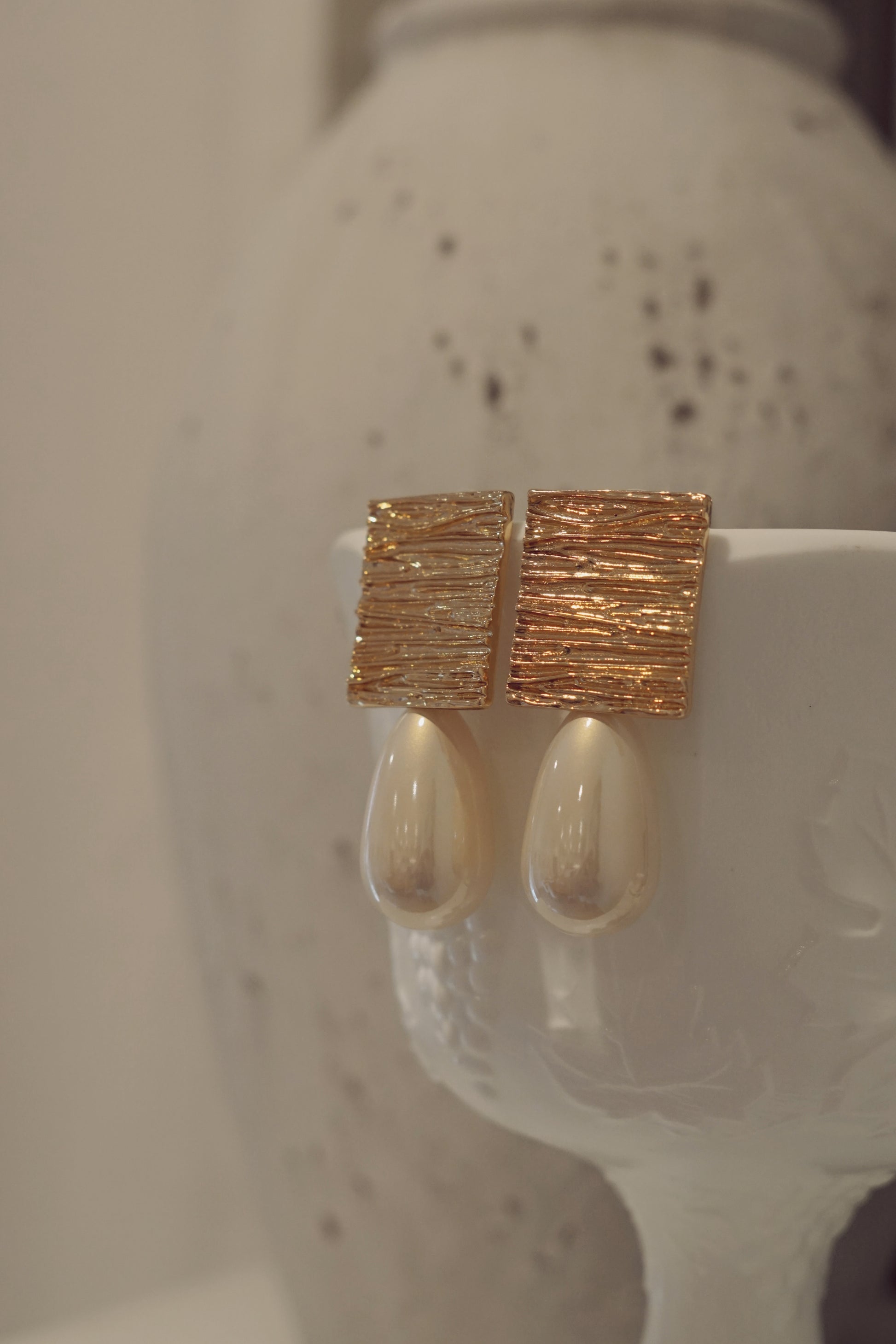 Introducing our Textured Gold & Pearl Studs. A fusion of classic and modern, these statement earrings will elevate any look. The intricate texture of the gold paired with the timeless elegance of pearls add a touch of luxury to your style. Make a statement with these exclusive studs.