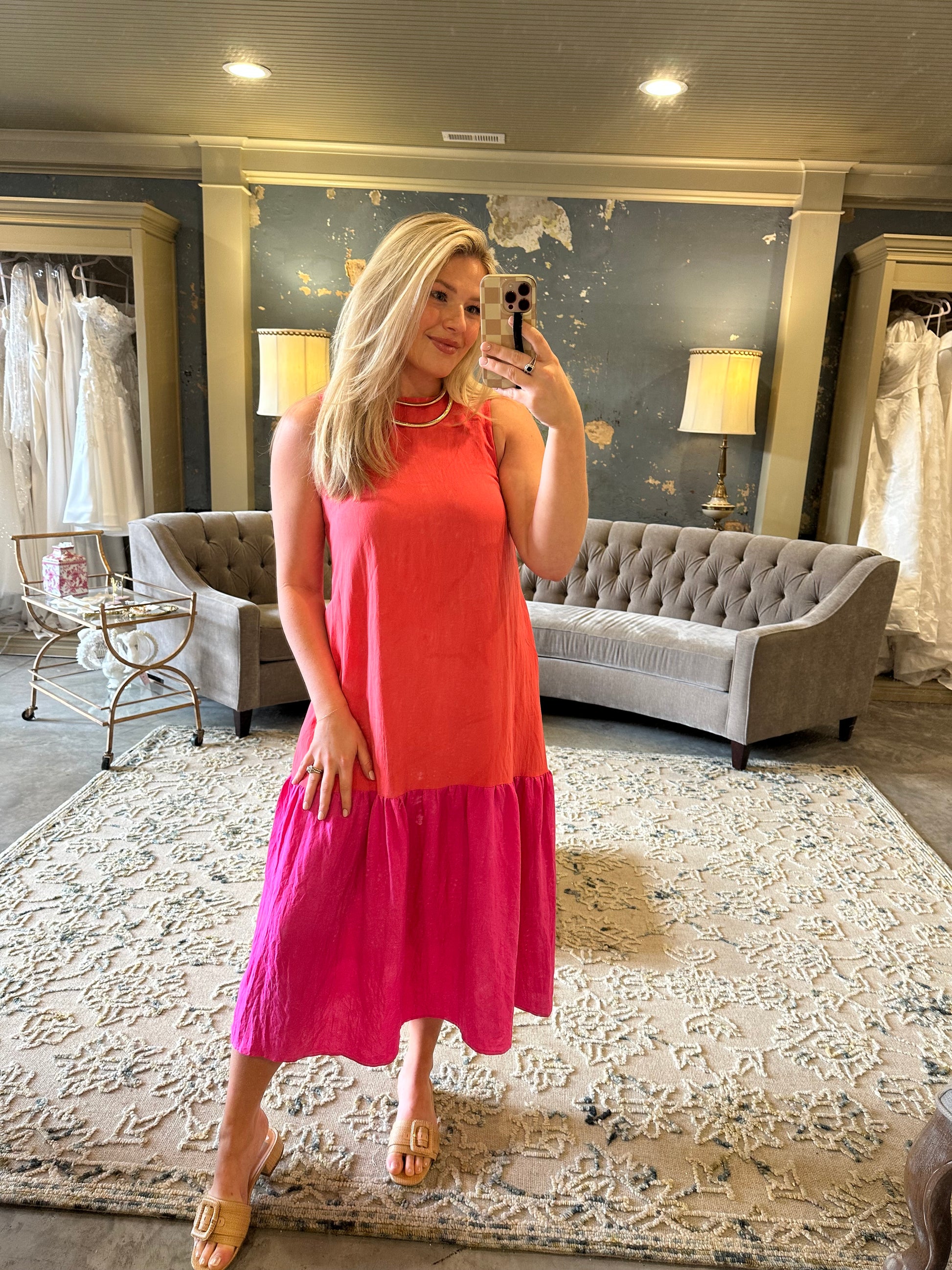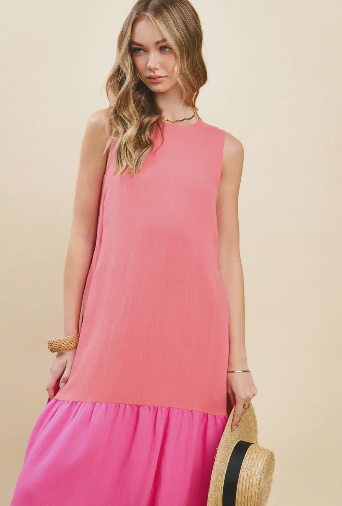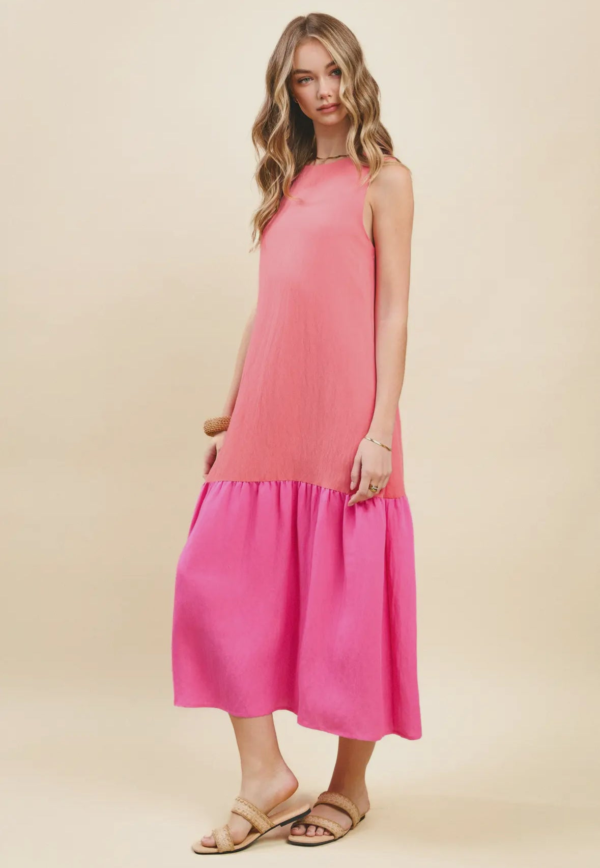 Elevate your summer wardrobe with The Isla Drop Waist Midi Dress. This color block midi dress is perfect for any occasion, with its elegant drop waist design and effortless style. Simply throw it on and you're ready to go. Experience the luxury and exclusivity of this must-have dress.