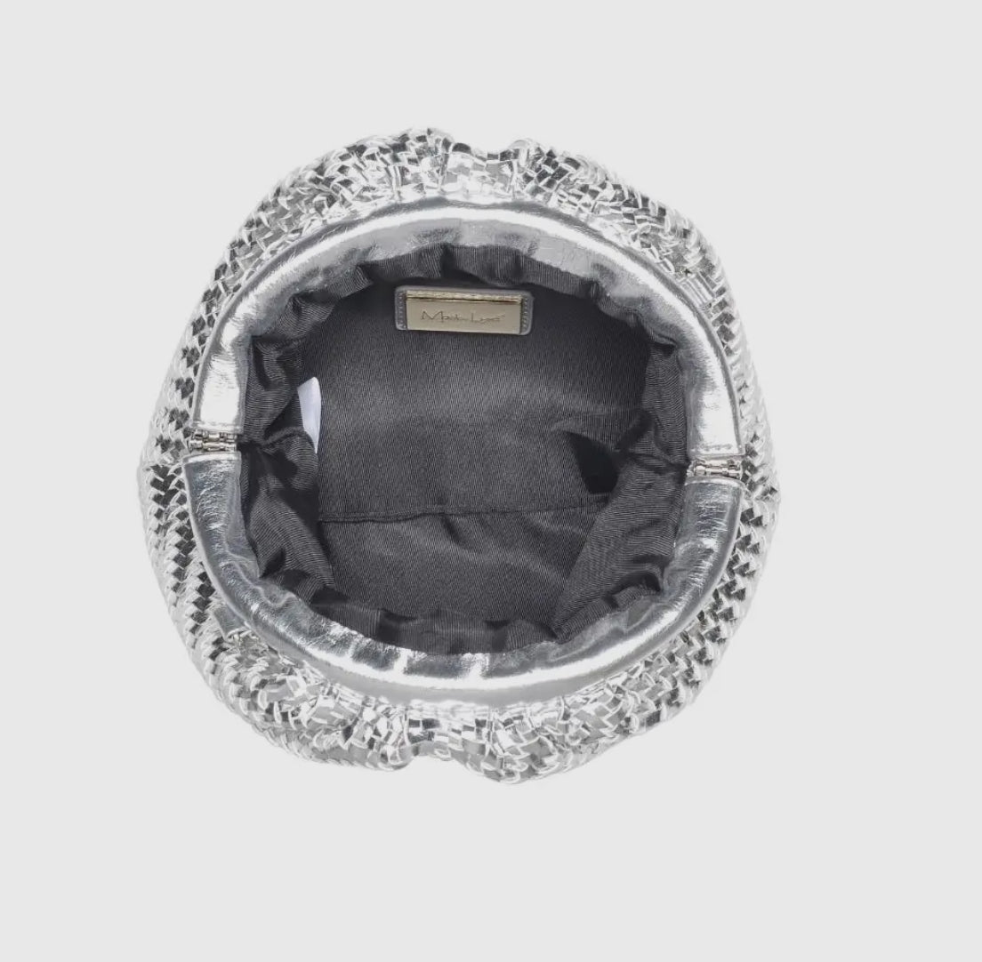 - Exterior Details: Woven Design, Half Moon Shaped, Detachable Chain Strap